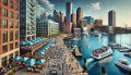 Vibrant Summer Day at Boston's Seaport District: A Harbor View