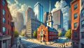 Enchanting Boston Skyline: A Nostalgic Vision in Realism and Gouache