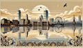 Boston Skyline Reflected in Charles River: A Digital Art Perspective