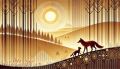 Sunrise Serenade: A Red Fox Mother and Kit in a Gustav Klimt-Inspired Landscape