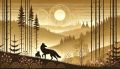 Sunrise Silhouettes: Eastern Coyote Mother and Pup amid Klimt-Inspired Landscape