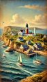 Coastal Charm: Sailboats and Lighthouse at Martha's Vineyard