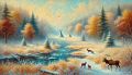 Enchanted Autumn Vista: Deer by the Frosty Charles River