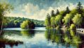 Palette Knife Painting of Serene Walden Pond in Massachusetts