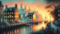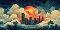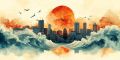 Surreal Sunset over Boston: A Fantastical Watercolor Skyline