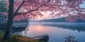 Spring Awakening at Quabbin Reservoir with Cherry Blossoms Ablaze