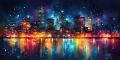 Vibrant Reflections: Boston Skyline Illuminated by Nighttime Splendor