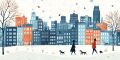 Solitary Figure in Red Overlooking Snowy Boston Skyline