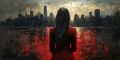 Crimson Solitude: A Woman Contemplates the Bustling Boston Skyline