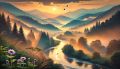 Sunrise Serenade: A Mother Otter and Pup Amidst Whimsical Waterscapes