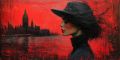 Elegant Silhouette Against a Crimson Brushstroke Skyline