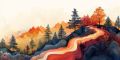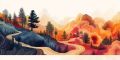 Serene Illustration of Mohawk Trail with Sunrise and Autumn Trees