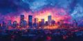 Stylized Midnight Dreamscape of Boston Skyline in Vivid Colors