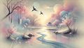 Tranquil Dawn at Concord River: A Pastel Springtime Vision