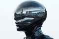 Surreal Vision of Boston Reflected in Futuristic Humanoid's Head
