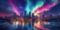Vibrant Aurora Over Houston Skyline in a Wintry Twilight