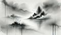 Ethereal Vistas: Monochrome Watercolor of Boston Harbor Islands