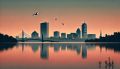 Dreamy Dawn Over Boston: A Minimalist Interpretation of Urban Sunrise