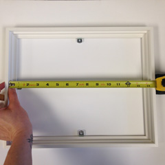 We will have you email a photo, placing a measuring tape across the frame. In the case of a picture frame, you will place the tape across the back of the frame (see image 8). If you have purchased a floater frame, you will place the tape across the front of the frame (see image 9). Please make sure your photo is well-lit, taken either in natural light or in a room with good lighting.