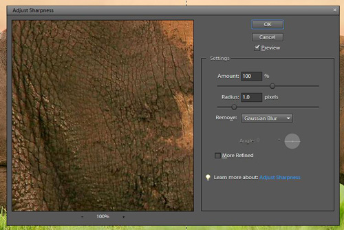 Amount: A value, usually from 1 to 100, determining how much of the contrast effect to apply. A value in the low to mid range is usually best, as images are susceptible to oversharpening.