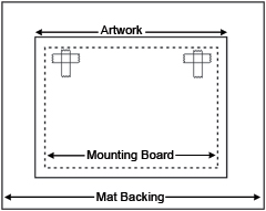 A mat can add to an artwork, but is not essential. Whether or not you choose a mat will depend on the size of your artwork and frame, and the style you wish to display. This mounting method allows the artwork to expand and contract with the changes in temperature and humidity over time. You can choose to float mount rather than mat your artwork. There are two styles: flush float mounting, and raised float mounting. Photo corners, mounting strips or tabs, or full adhesion are alternate methods of mounting artwork.