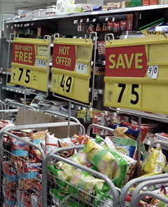 Billboards are most often displayed at an extremely large size, 20-100 feet above the ground, intended to be seen and understood for the few seconds they are visible to passing vehicles. They often utilize short, catchy phrases or humor, bold colors, and large graphics. Due to their size, they are often printed on multiple strips of material, and put up in sections.