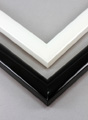 This glossy black frame with a high-shine finish features a slim curved profile.  The result is a classic yet modern border that can be matched with almost any artwork and decorating style.