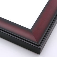This solid wood frame has a shallow scoop profile and matte black edging. The face features an ombre fade into and out of a rich mahogany with a faint wood-grain finish.