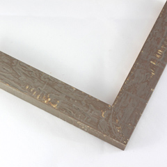 This textured frame features a distressed style and a desert-like finish. The face is a muted grey-brown with light natural wood finish showing through the distressed surface.