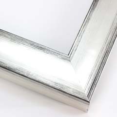 This glossy silver frame has a subtle scoop face with black distressed scratching on the outer edges. The drop edge is the same gold-foil as the face.